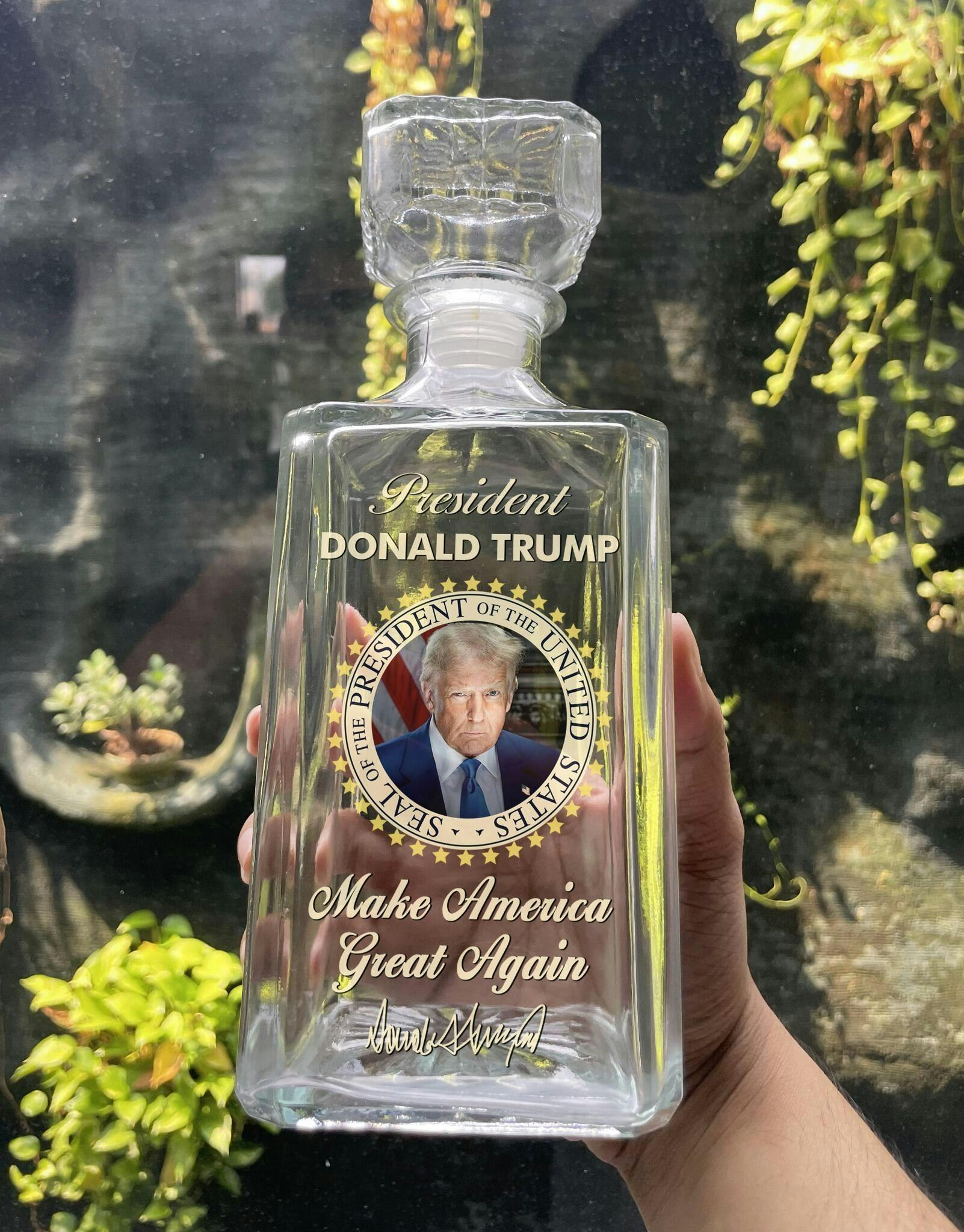 Introducing the "US Patriotic Pride Edition"Collection. This whiskey bottle is a statement piece for home bars, and special celebrations, a perfect blend of elegance and practicality. This is the perfect gift for anyone who is Republican or the 47th President supporters.